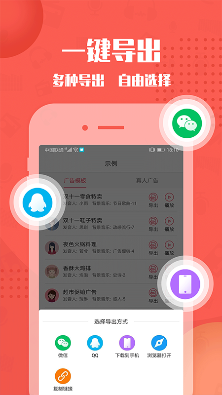 一键导出:一键导出MP3,多平台分享至好友。