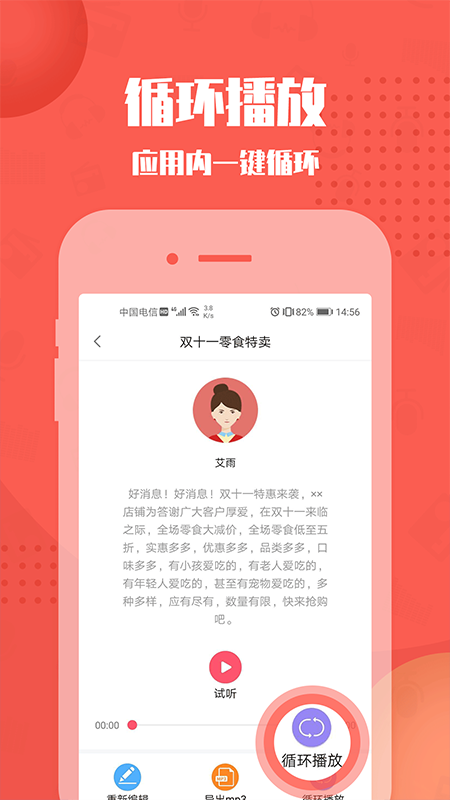 永久免费使用的广告叫卖配音软件,安徽文熙科技有限公司官方出品,免费文字配音神器app功能超级强大,支持一键导出mp3音频文件,丰富的广告素材模板可以使用,手机配音神器。