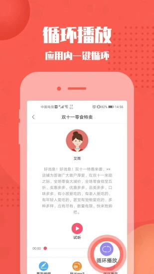 配音神器免费版是一款功能非常强大的文字转语音的工具,软件更加的倾向与广告叫卖这一方面。有很多现成的模板,用户只需要照着套就行了。配有都是真人的声音哦。不生硬。有感情。这些都只是主要功能。当然也可以文字转语音,让我们心中不好意思说的话,也可以这个软件大声的说出来嘛!