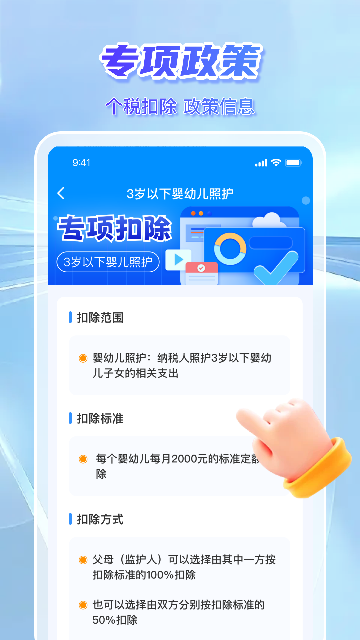 4. 了解专项政策:查看专项扣除(如3岁以下婴幼儿照护)的扣除范围、标准与方式等政策信息。