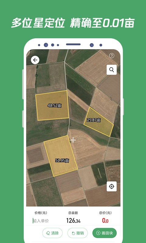 2.精度0.01亩,卫星地图高清,每一片土地都能看得一清二楚,全自动测量,一键式操作;