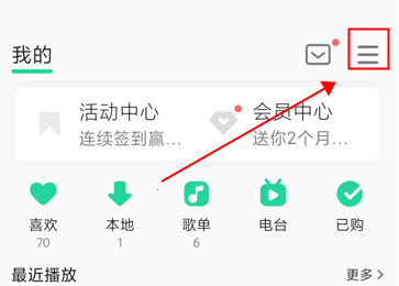 最近播放可以看到最近播放的20首歌曲。