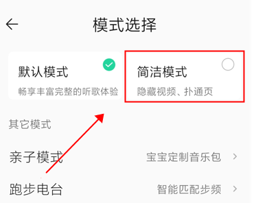 首先点击我的-点击上角的三条杠-点击设置-往下翻找到通用设置-点击模式选择-点击简洁模式即可: