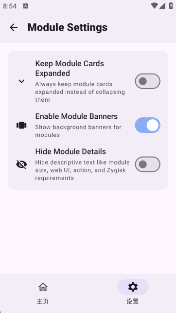 6:在“Module Settings”中,可设置模块卡片是否保持展开、是否启用模块横幅、是否隐藏模块详情等,优化模块展示与管理体验。