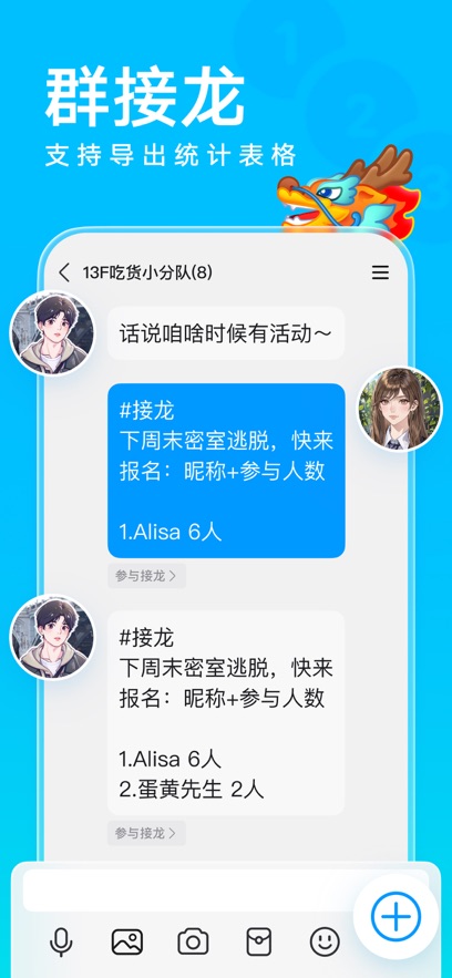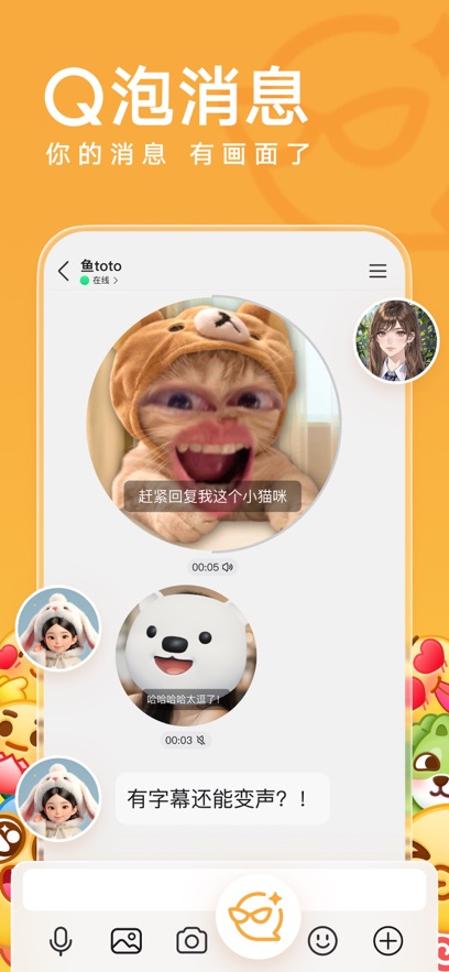 聊天消息:随时随地收发好友和群消息,一触即达。
