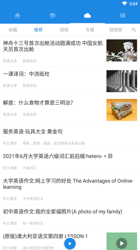 丰富的英语学习资料、听力练习、双语阅读、双语故事、双语笑话、四六级试题、单词学习、日常造句、语音学习、口语练习一应俱全。