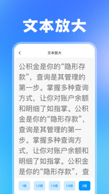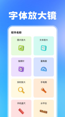 大号字体辅助看屏app是一款字体放大工具,能够提供字体放大、图片放大、文本放大功能,匠心独运的生活优化神器,巧妙融合了多样实用工具,旨在以贴心设计升级您的日常体验与手机使用感受,专为视力稍逊的长辈及长时间沉浸于文字世界的阅读爱好者量身打造,让每一次滑动屏幕都成为一场清晰舒适的视觉盛宴。