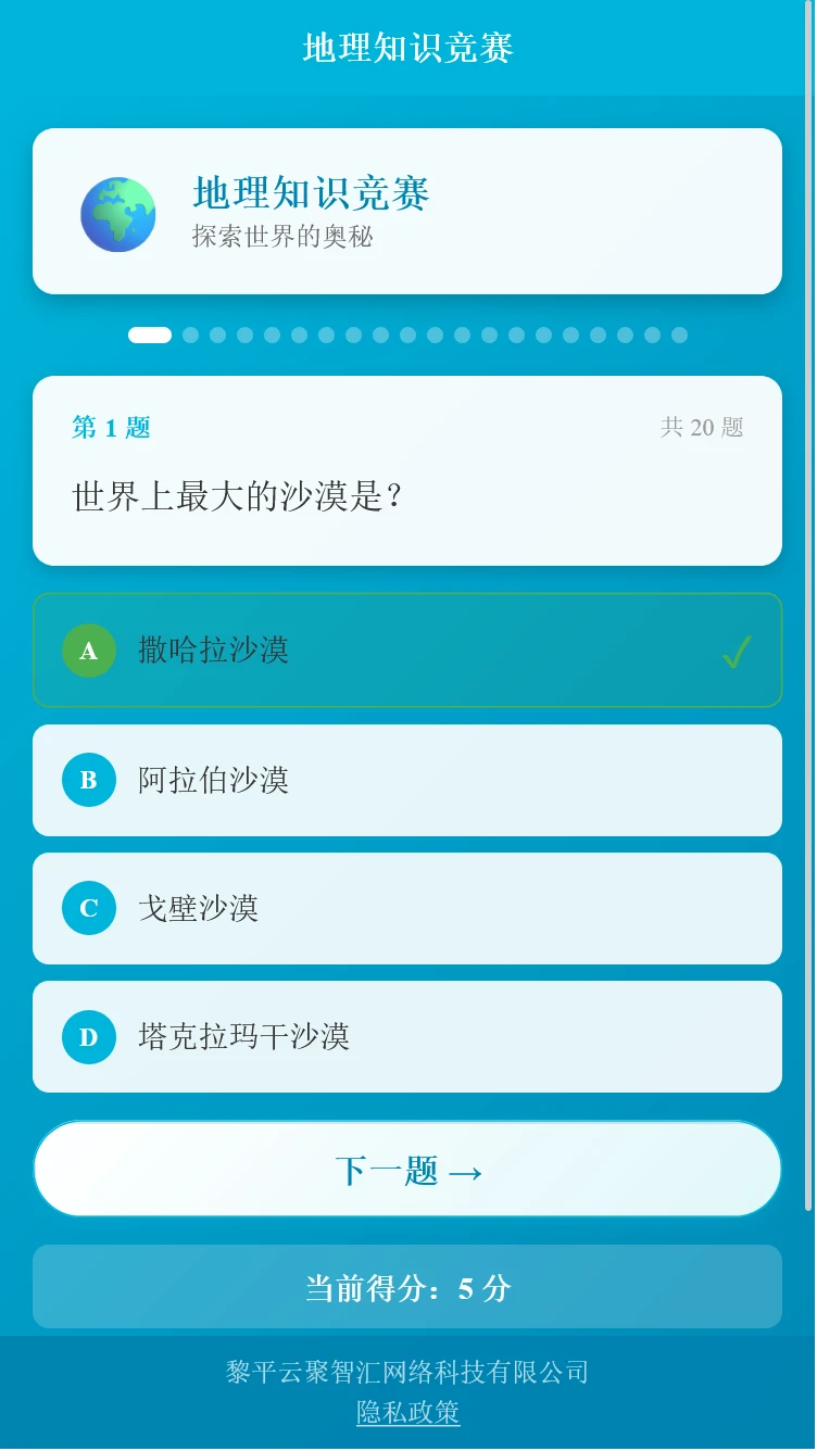 云聚智汇助手app是一款知识竞赛答题助手,一部行走在指尖的地理知识宝库,专为地理迷、求知学子及环球旅者匠心定制,它以极简主义为设计理念,轻量化架构确保流畅体验,无广告侵扰,无弹窗打断,让每一次探索都纯粹而专注,无论是渴望揭开地球神秘面纱的探险家,还是孜孜不倦汲取知识的学子,亦或是规划下一次旅行的梦想家,都是你不可或缺的随身伴侣。