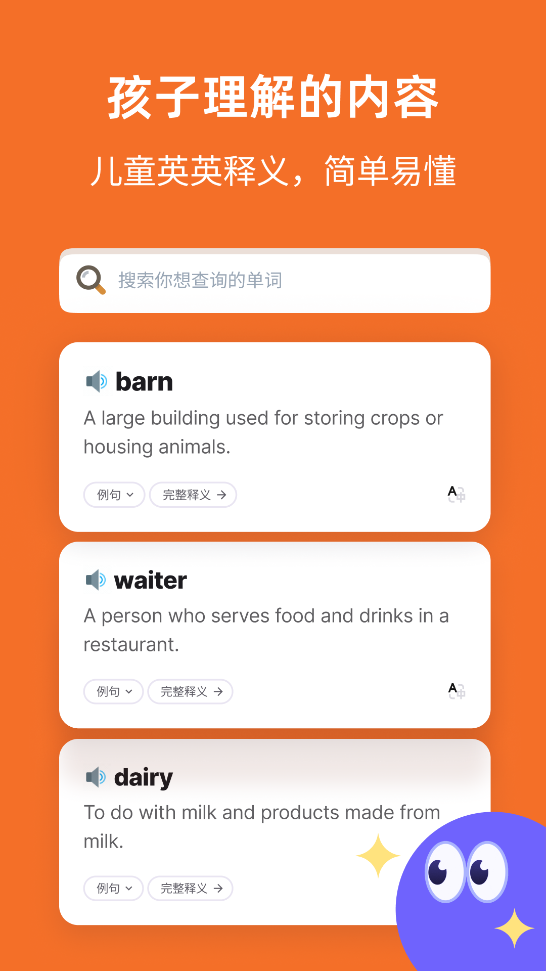 3、智能解读单词更易懂,摒弃复杂术语,用儿童化语言拆解含义,搭配语境分析,让孩子快速理解掌握。