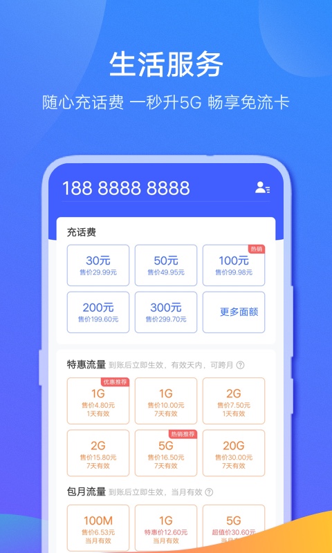 3、【手机充值】快速到账,正品保障,套餐随选,价格实惠!