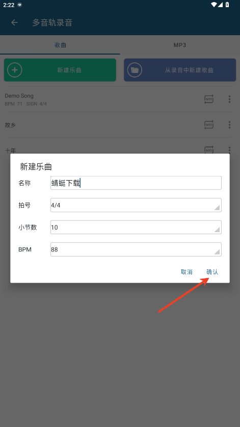 3.输入新建乐曲的名称,节奏,小菌趴节数等信息。