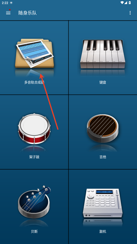 1.随身乐队app页面,点击选择耕川罪多音轨合成器。