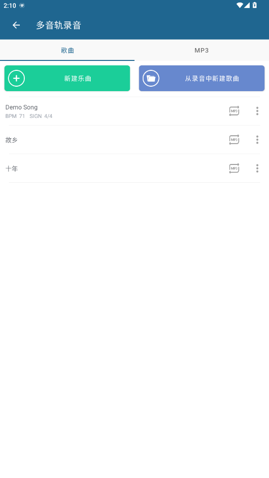 2.多音轨合成器页激册面,点击新建乐曲。