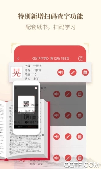 新华字典app:最新版的新华字典app正式上线了,这版新华字典里面增加了非常多特色亮点,据说不仅新增了100多个新字新词以及新义,而且还新增了二维码的扫描功能,让用户随时了解自己购买的新华字典是否为正牌哟,同时还有各种不同的播报功能,这些功能的亮点也是特别的多,用户可以享受到的福利也是多多的哟。