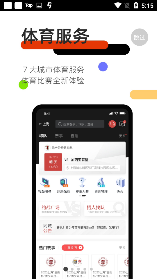 1,热门赛事推荐,让你不会错过身边发生的精彩赛事,提前报名预定参赛席位