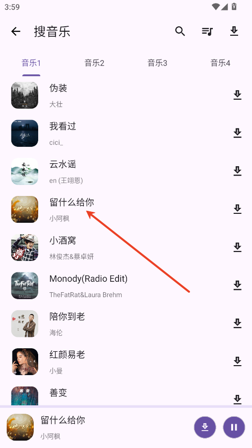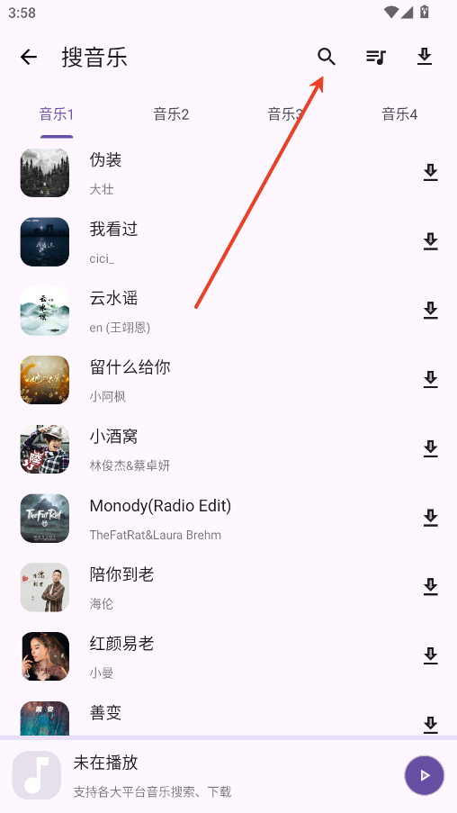 2.右上角搜索按钮可以快捷的找到你想听得歌曲。