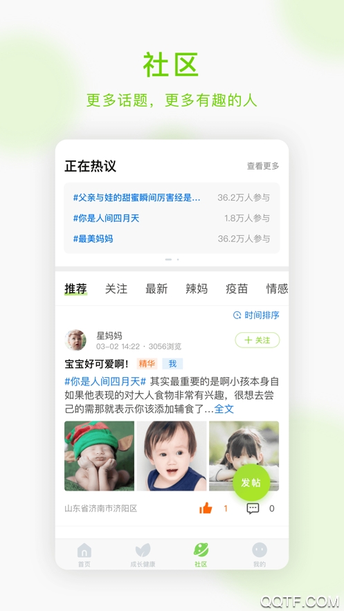 宝爸宝妈的交流天地,辣妈潮爸可以分享宝宝打疫苗及育儿的各种有趣的故事,分享育儿妙招相互启发。