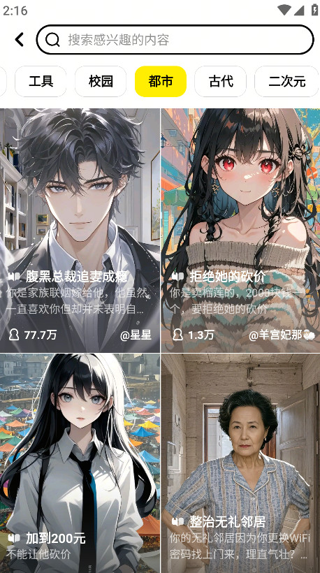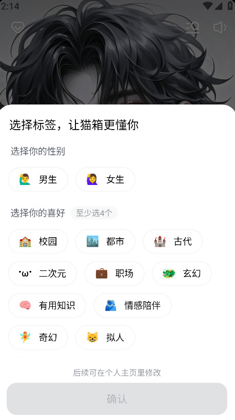 1.打开猫箱,点击下方的第二板块,在搜索框输入内容,即可定制我们的ai朋友。