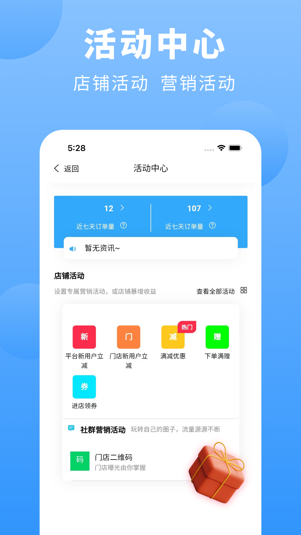 上铺商家助手app是专为商户打造的便捷经营管理APP,能在线查看账户、开启店铺活动,直观呈现经营数据助力决策。操作简洁易上手,适配各类实体商户,高效解决订单、商品、营销及数据统计需求,省心打理店铺日常。