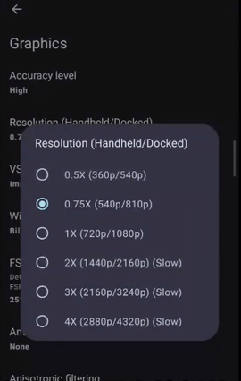 3.分辨率始终设置为较低的0.75倍以获得更高的性能。如果您是低端手机,0.5倍更好。