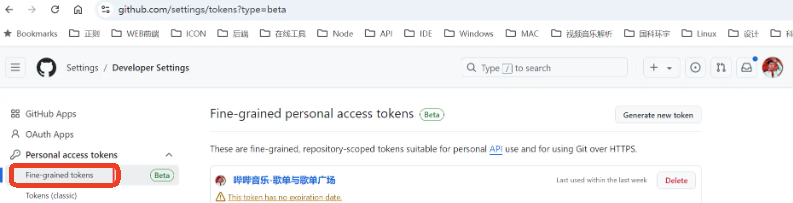 3.创建一个私钥,用于读写仓库,从而保存歌单到仓库中