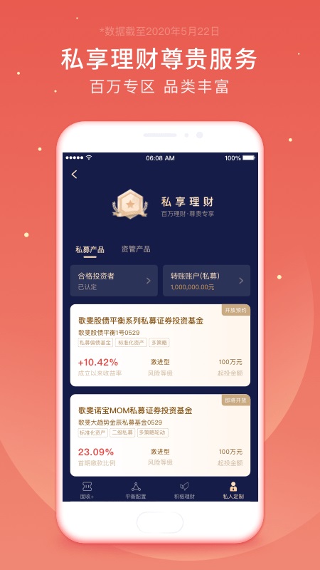 【资产配置】独家研发的资产配置功能,每季提供资产配置方案及时调整配置策略,可视化图表助您轻松打理您自己的组合