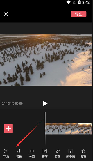3、之后用户就可以对视频进行编辑了,在最下方有字幕、音乐、分割等功能;