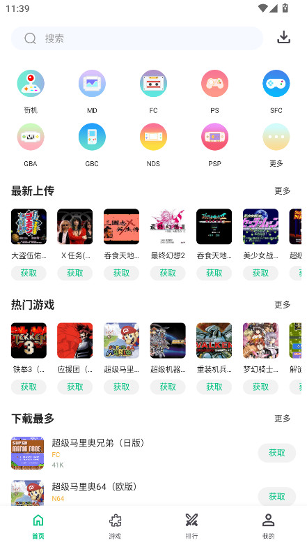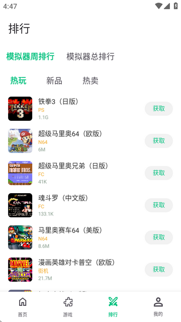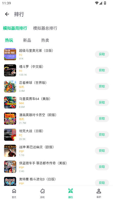 3、在排行榜中可以查看热门的游戏,点获取。