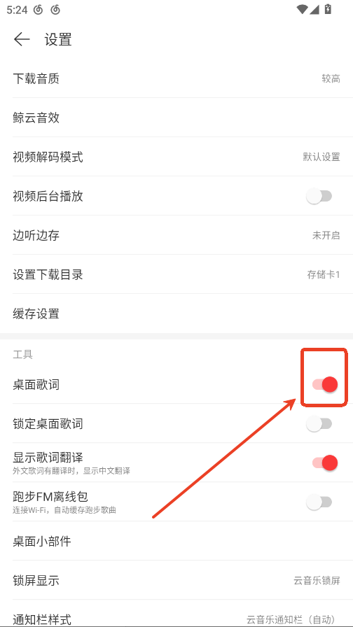 网易云音乐歌词怎么显示在屏幕上