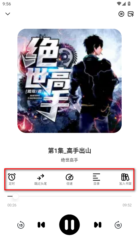6.当然了,本软件支持定时、跳过片尾、倍速、目录、加入书架等功能,大家可以按需点击进入使用哈。