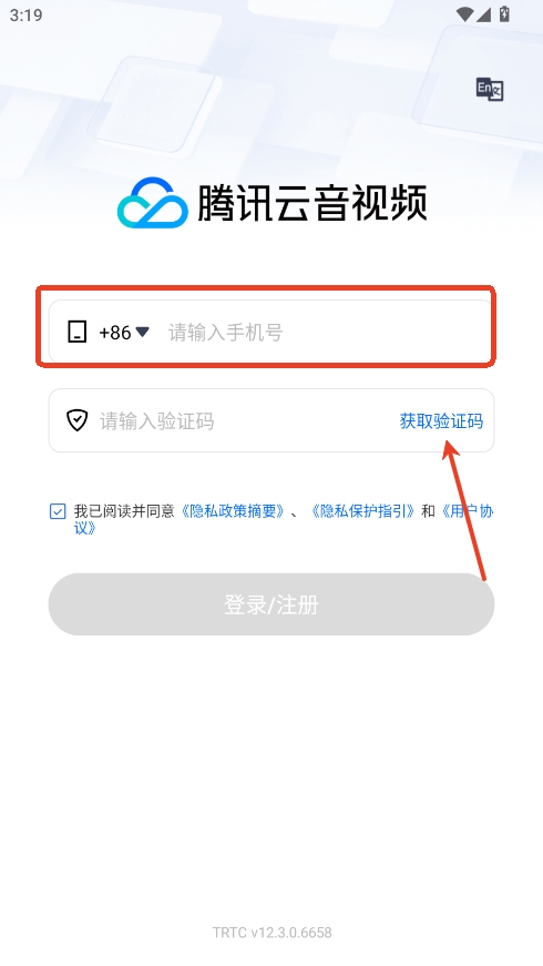1.进入软件输入手机号点击获取验证码