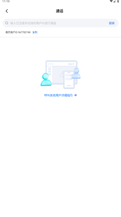 2.如是需要和另一个人通话,输入地方的用户id即可。