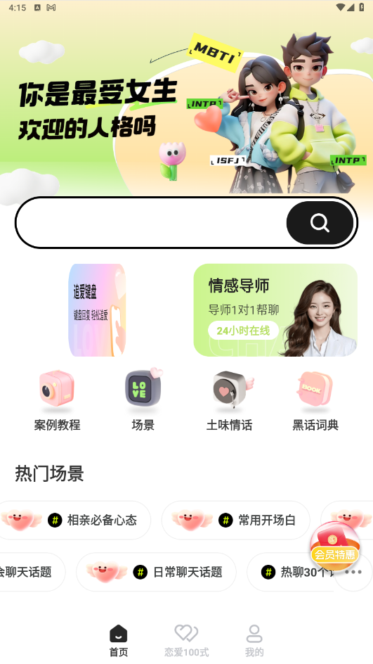 恋知道app是一款专注于提升恋爱技巧和改善恋爱关系的恋爱神器。通过这款软件,大家可以获取恋爱建议、追爱键盘、情感老师一对一帮聊、土味情话合集、案例教程、恋爱人格测试等服务功能,帮助用户更好地了解自己和他人,提升恋爱能力。
