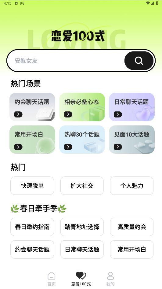 恋知道是一款帮助用户提高恋爱聊天技巧的APP。