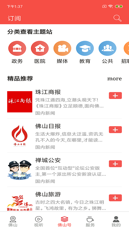 佛山是广东省辖地级市,佛山+也叫佛山Plus,这是一款专为佛山的小伙伴推出的新闻客户端,软件为我们提供来自全市、5区、32镇区官方权威信息,让你随时随地轻松了解市区政经事、镇街身边事、街坊贴心事。