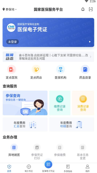 1.进入软件之后点击页面正下方的“医保电子凭证”;
