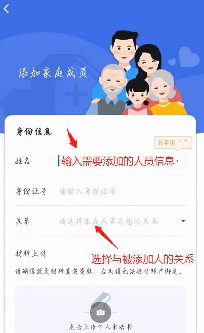 4.输入需要添加的人员信息,选择关系“父母、爱人、孩子、其他”