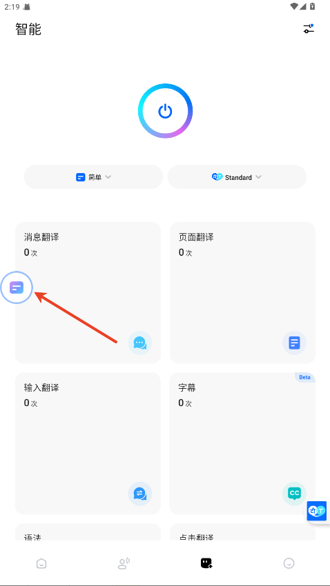 1.打开软件,先授予对应的权限,进入软件后,先选择要翻译的语言