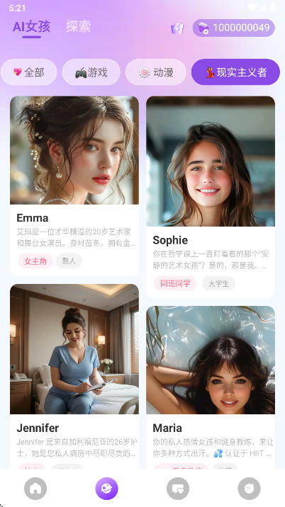 1.打开Sweet AI,向左滑动,选择自己喜欢的ai聊天对象。