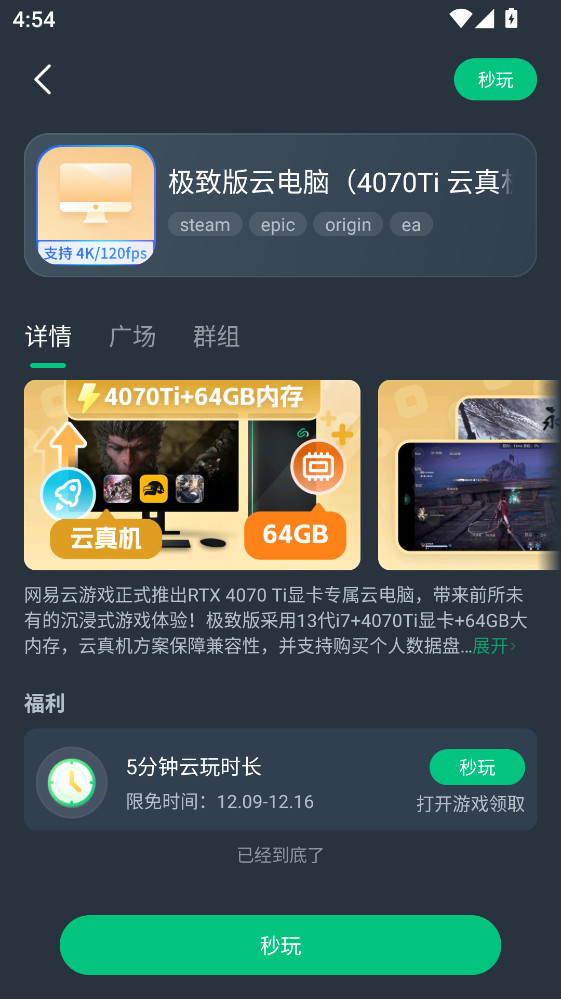 网易云电脑是一款引领潮流的云端游戏交互应用,作为官方推出的云游戏平台,它集成了强大的资源与服务体系。用户可直接在云端运行对硬件要求严苛的PC及手机端大型游戏,操作流畅,画面精美,整个过程无需本地下载安装。无论是寻求便捷的休闲玩家,还是渴望第一时间体验新作的核心爱好者,都能在此获得一站式、高品质且流畅自由的游戏享受,真正重新定义了移动时代的游戏方式。