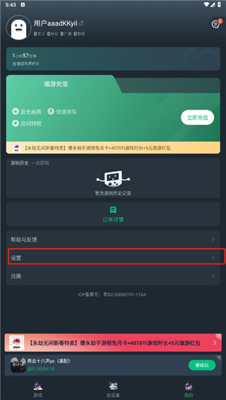 1.打开网易云电脑app,点击进入我的板块中,再点击设置选项。
