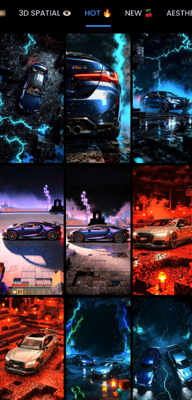 1.下载并打开WallpicsC4K动态壁纸应用,进入主界面后,根据个人喜好选择壁纸分类(如自然、动漫、汽车、抽象艺术等)。