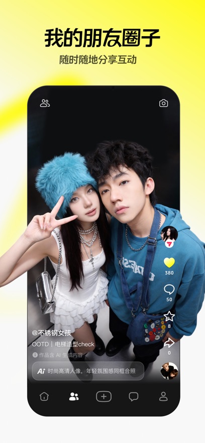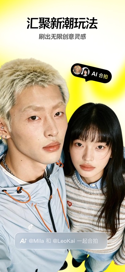 潮流玩法社区:聚焦“玩法”而非单纯内容展示,用户可快速套用热门模板参与挑战,生成个性化短视频/图文。