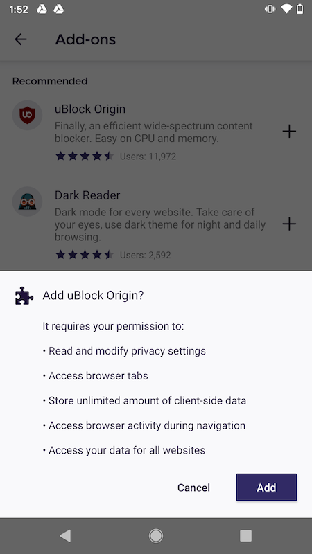 你可以在下述位置安装 Firefox for Android 的扩展:addons.mozilla.org 或者通过浏览器的附加组件管理器来安装。