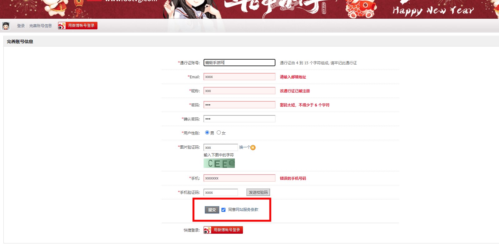 3、根据提示填写对应信息(带*一栏是必填项)最后点击“提交”即注册完成。
