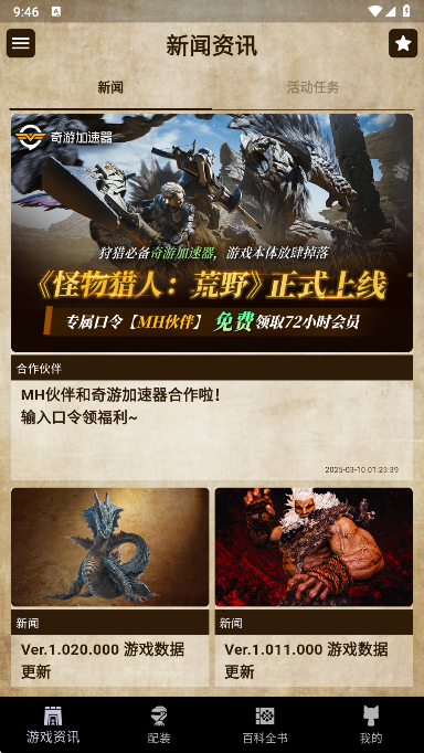MH伙伴荒野是一款专为《怪物猎人:荒野》玩家打造的实用型游戏工具应用,集资讯、攻略与社区于一体。玩家可通过该软件随时获取最新的游戏动态、官方活动与版本更新信息,轻松掌握游戏走向。应用内提供详细的狩猎攻略、装备配装推荐与玩法解析,帮助玩家高效提升战斗实力。同时支持社区交流功能,玩家可以分享心得、讨论技巧,随时随地参与互动,全面满足不同阶段猎人的游戏需求。