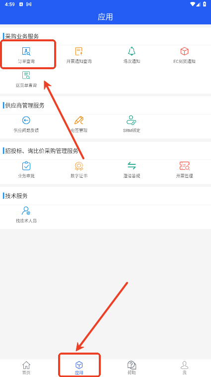3、中国矿用物资网的注册会员将APP绑定自己的账号密码,可第一时间了解公司订单与开票通知单。