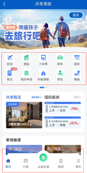 差旅申请审批通过后,申请人可点击“首页-航班、酒店和火车票”等模块,根据系统提示进行差旅订单信息的填写及核对,并关联审批通过的差旅申请,完成差旅交通及住宿的预定。