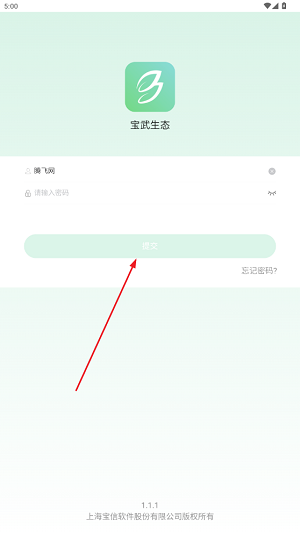 1、进入宝武生态app后,输入自己的账号密码提交;