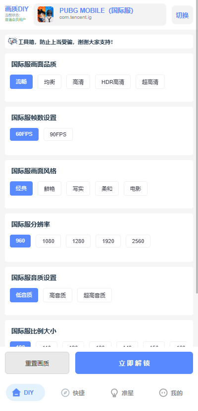 3.在功能板块内,相应的画质选项中选择想要的画质模式进行解锁应用。